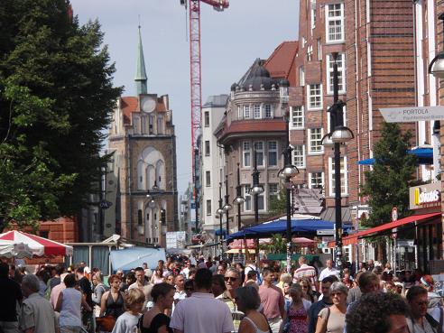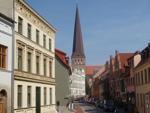 Lohgerberstraße mit der Petrikirche im Hintergrund |