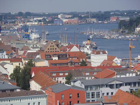 Rostock / Warnow / Bootshafen Gehlsdorf (rechts) (Blick von der Petrikirche) |