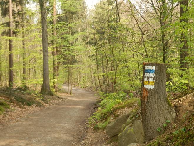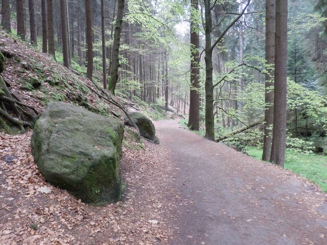 Weg über (oder besser: durch) die Schwedenlöcher und am Amselsee vorbei.