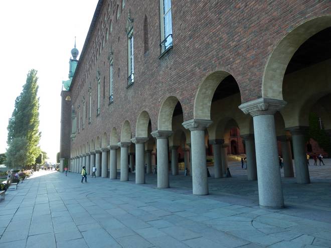 Stockholms Stadshus Borgargårdens arkader Stadshusparken Riddarfjärden Södermalm |