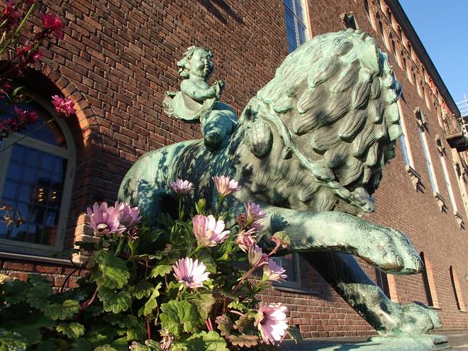 Stockholms Stadshus Bacchus på lejon (av Ansgar Almquist) |