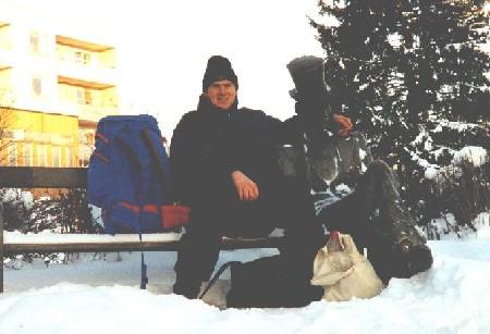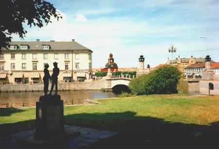 Nils Ehlin-Statue (rechts) in Filipstad |