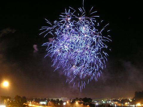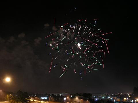 Feuerwerk (Blick von Mickeys & Friends Parking Structure) Das Feuerwerk wird nicht direkt über dem Dornröschen-Schloß abgebrannt, wie es im Park den Anschein hat, sondern weit hinter dem Schloß außerhalb von Disneyland |