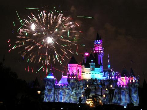 das Feuerwerk-Spektakel über dem Dornröschen-Schloß. Das Feuerwerk