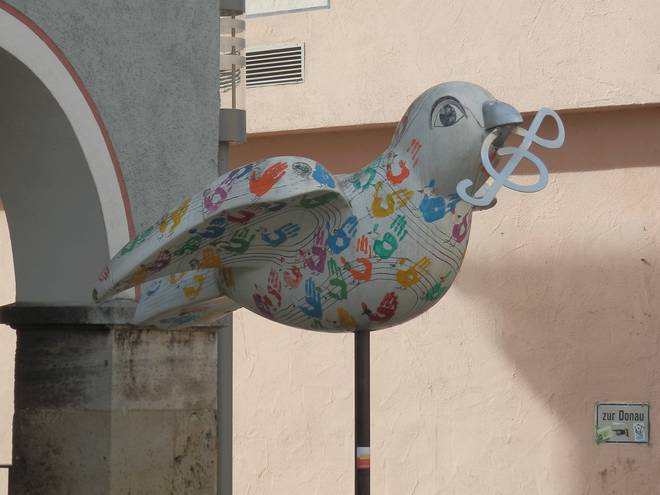 Ulmer Rathaus Roter Hund (Keith Haring) Neue Straße |