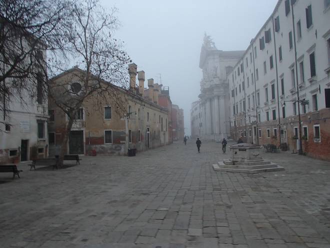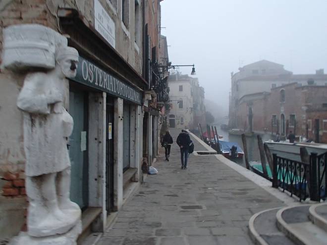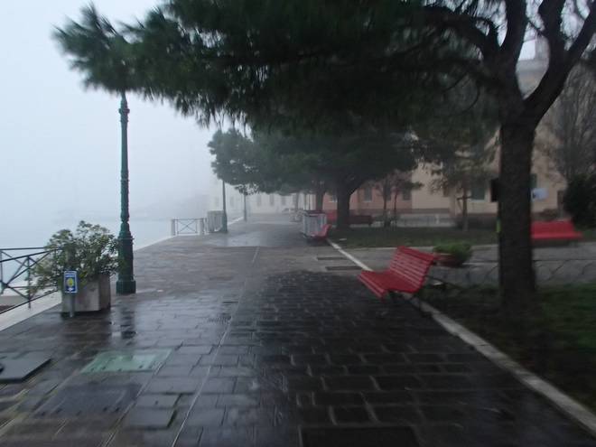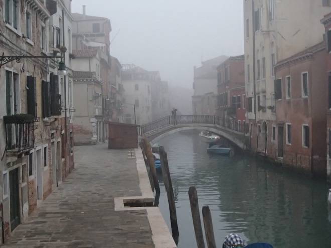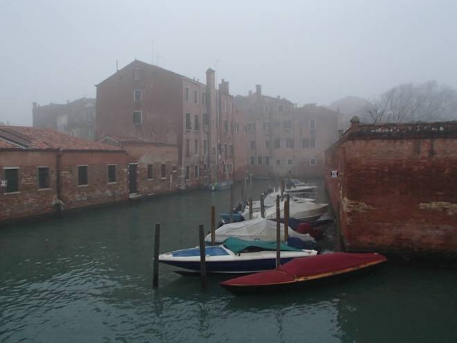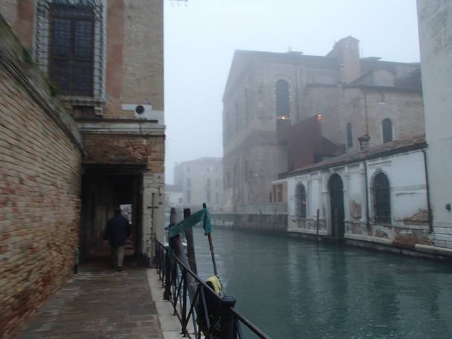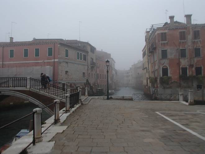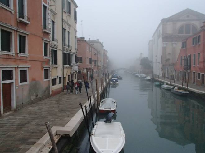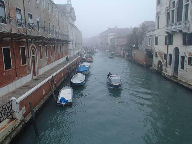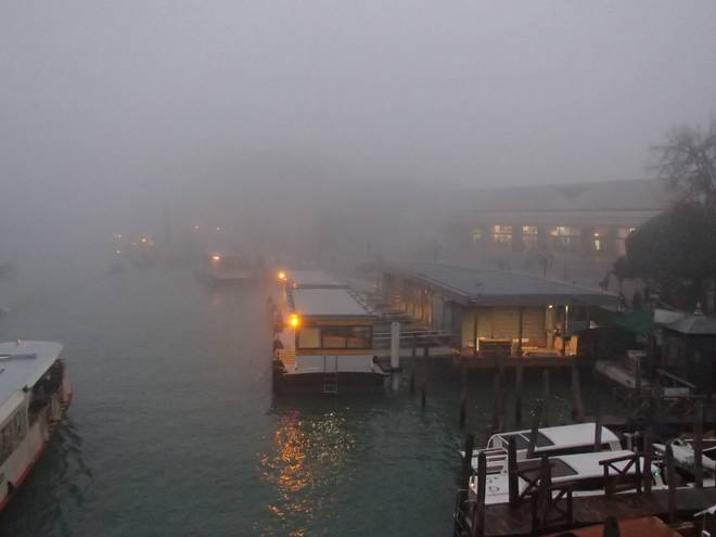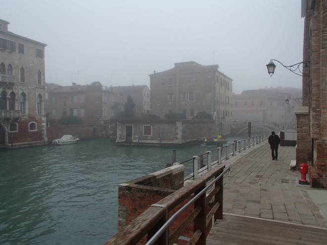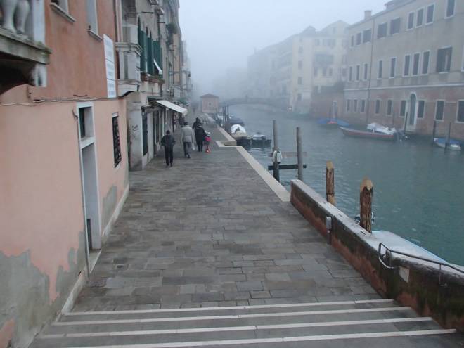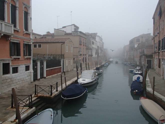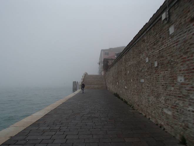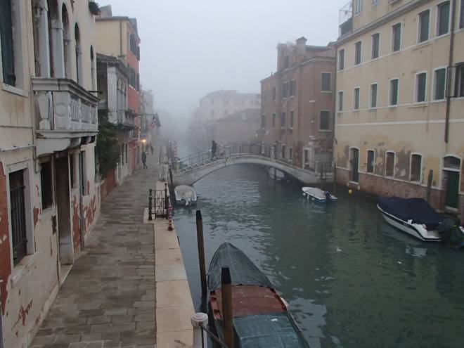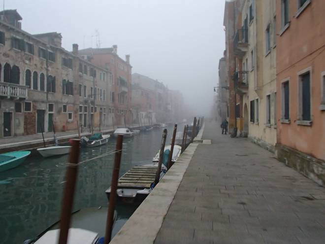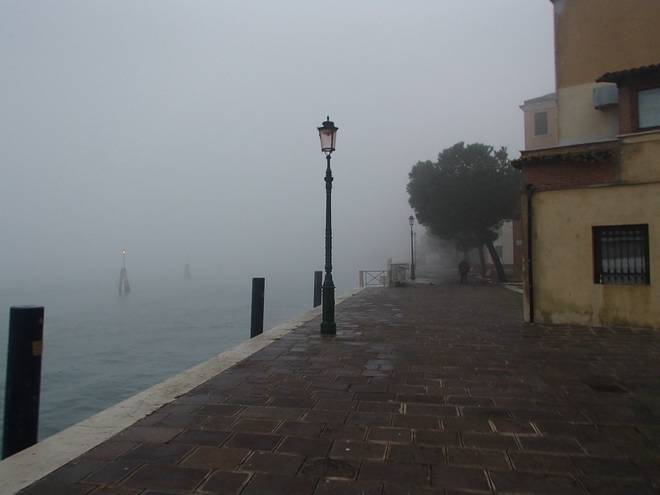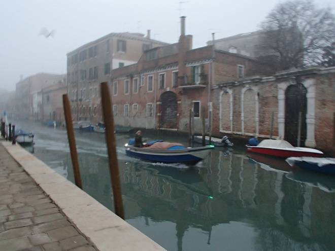 Calle Larga Penitenti Laguna Veneta Bei weniger Nebel könnte man hier auf das Festland gucken. Hier aber sah man nicht einmal das nächste Schiff. Auch wenn man es gut hören konnte. |