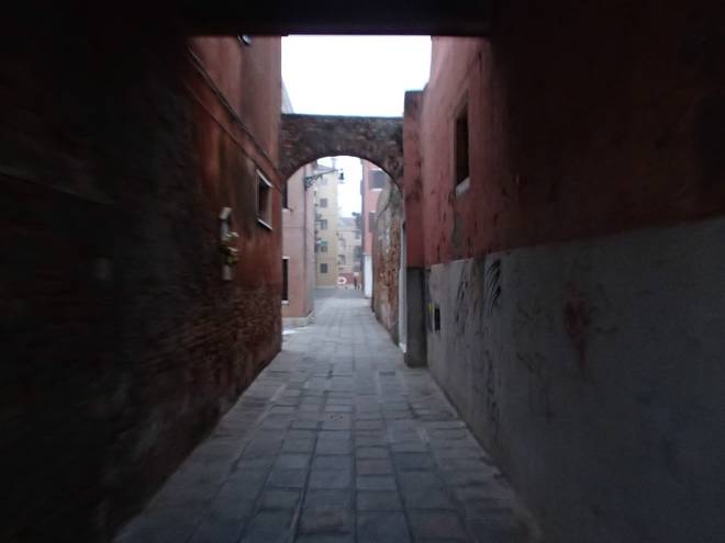 Rio di San Felice Oh weh. Ein Mädchen im roten Mantel. In Venedig. Und der sollte ich in den Tunnel folgen??? Daphne du Maurier läßt schaurig grüßen. |