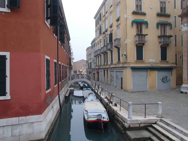 Ponte Fondamenta di Santa Giustina Rio di Santa Glustina Ein paar Schulen hier am Kanal zogen die Schülen von meiner Laufstrecke. |