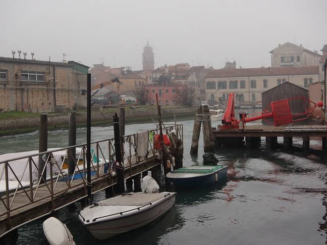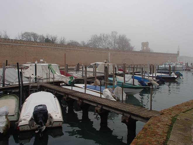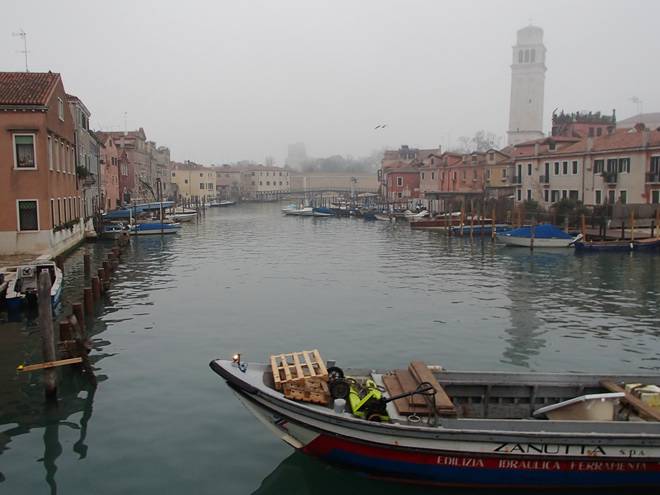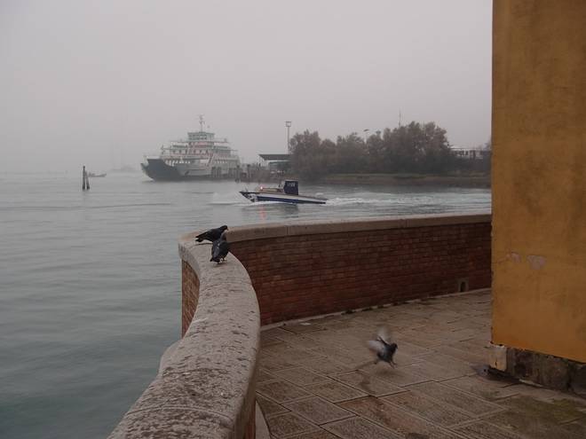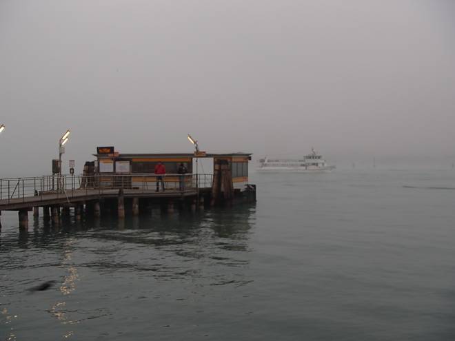 Laguna Veneta Der Nebel hatte sich nur wenig gelichtet, aber die nah am Weg fahrenden Schiffe konnte man erkennen. |
