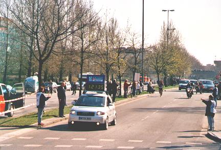 | Die Spitzengruppe der Sakter rast mit Tempo 40 um die Kurve in die Hindenburgstraße. | |