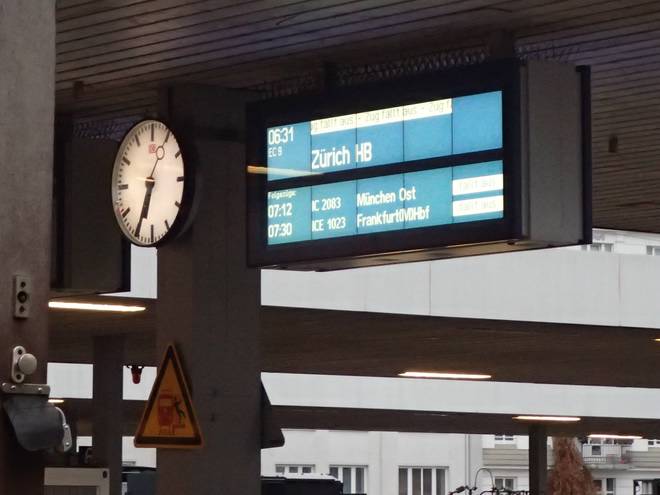 Bahnhof Hamburg-Altona 6.33 Uhr Am Abend zuvor hatte die Tief Oriana mit Starkregen und Sturm über Norddeutschland getobt, was natürlich gleich wieder zum Stillstand bei der Bahn führte. |