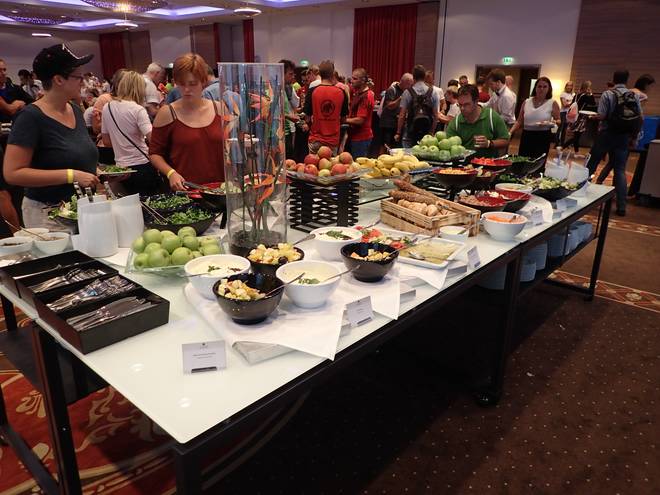 Hotel H2 am Alexanderplatz 17.28 Uhr Man hätte sich endlos rund und kugelig futtern können, aber dann wäre es am Folgetag mit dem Laufen schwierig gewesen. |