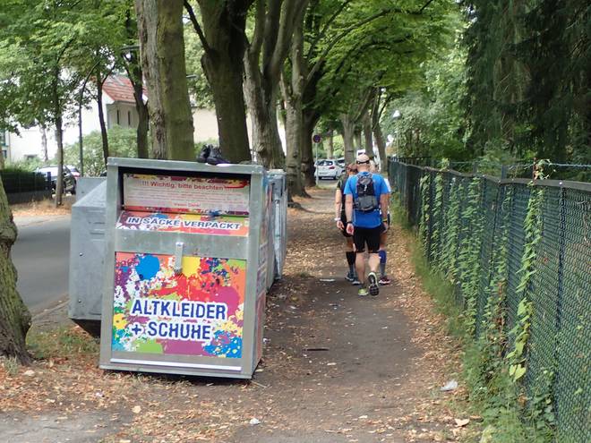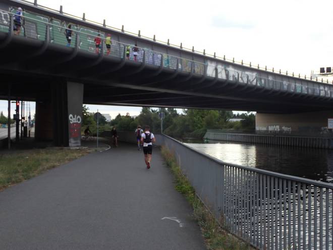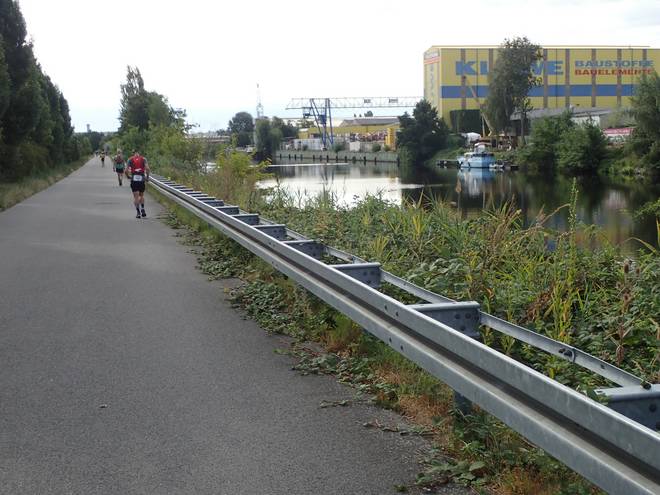 Zeppelinufer 13.24 Uhr / Km 58 Wohin auch immer ich guckte, es lief nicht gut. Aber gleich würde ich den Wechselpunkt Teltow erreichen. Dort gäbe es meinen ersten Wechselbeutel und Essen und eine Toilette. |