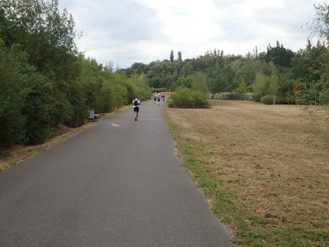 Landschaftspark Rudow-Altglienicke 9.43 Uhr / Km 31 Aber ich ließ mich nicht beirren und machte einfach weiter. Hier gab es sogar mal ein paar Zuschauer. |