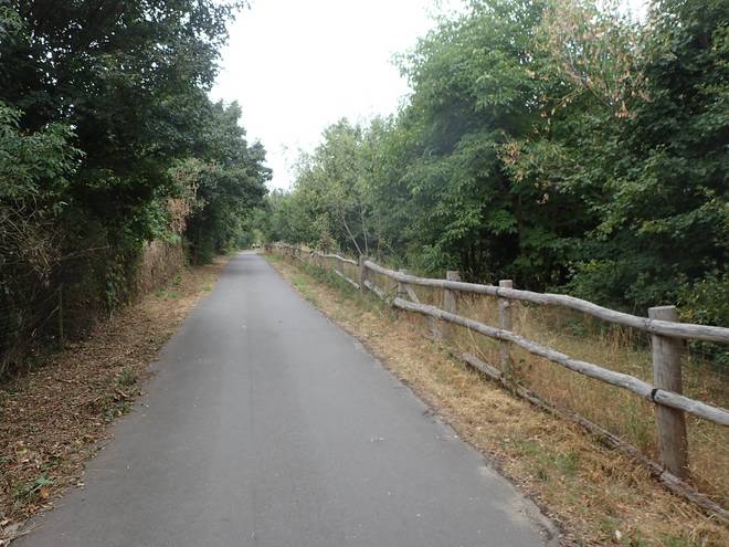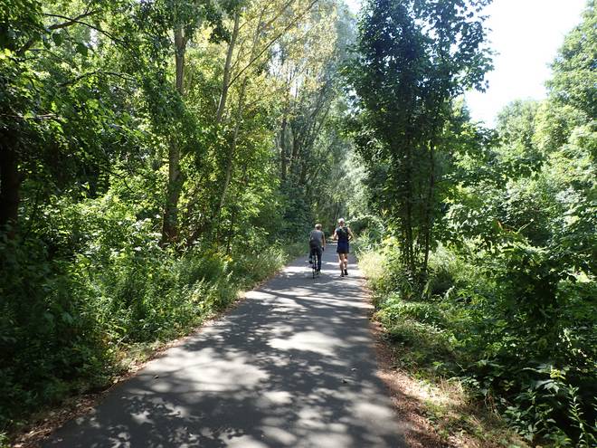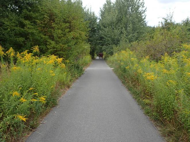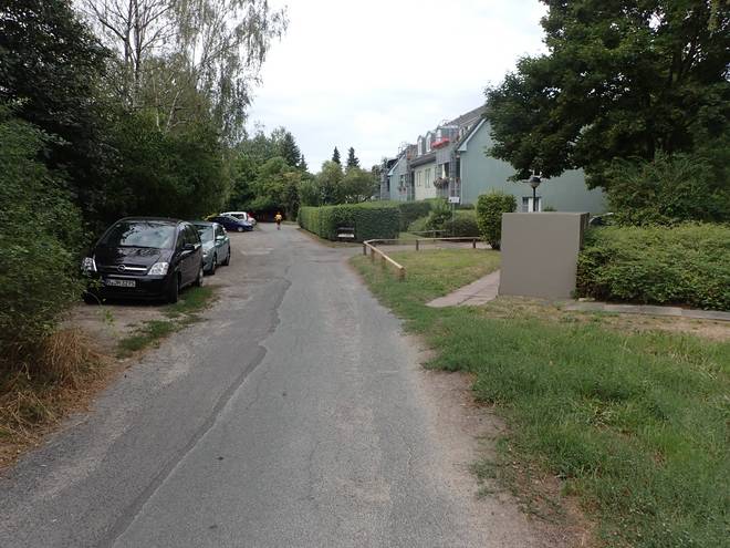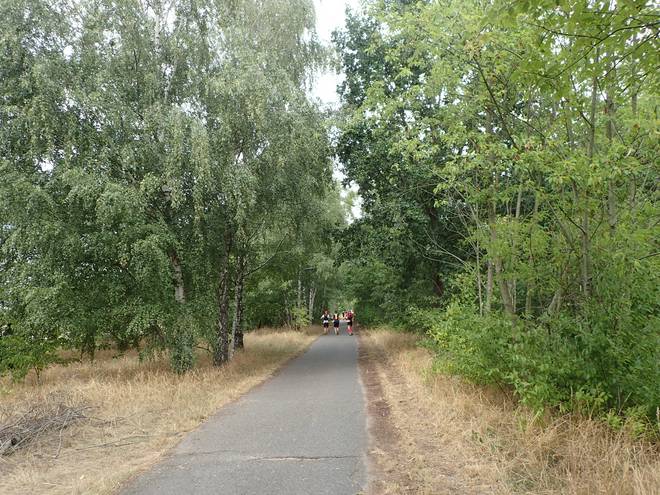 Großziethen 11.07 Uhr / Km 41 So sah also der Weg aus, auf dem ich 2017 im Dunkeln herumgestolpert war. Ohne etwas zu sehen war es nicht einfach, in der schmalen Spur zu bleiben. |