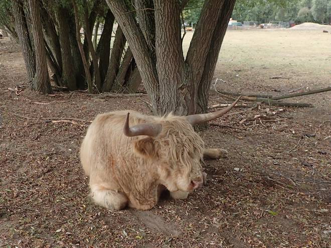 Südpark 10.02 Uhr / Km 33 Was man nicht so alles an der Strecke traf. Dieser Kollege befand sich zum Glück hinter einem guten Zaun. |