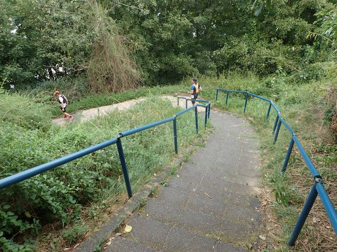 Am Dörferblick 10.14 Uhr / Km 34 Runter ging es vornehmlich auf Treppenstufen. |