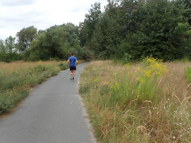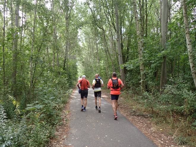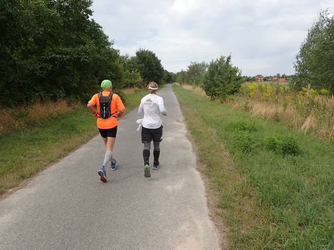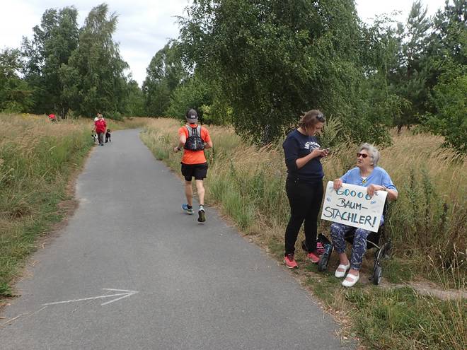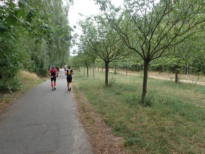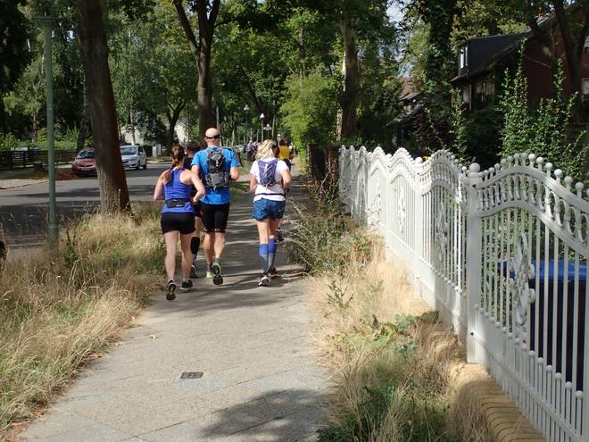 Rudower Höhe 9.39 Uhr / Km 30 Nach 3:33 Stunden und nur 30 Kilometern schon meine erste Gehpause. 2017 hielt ich 10:03 Stunden und 79,5 Kilometer durch. |