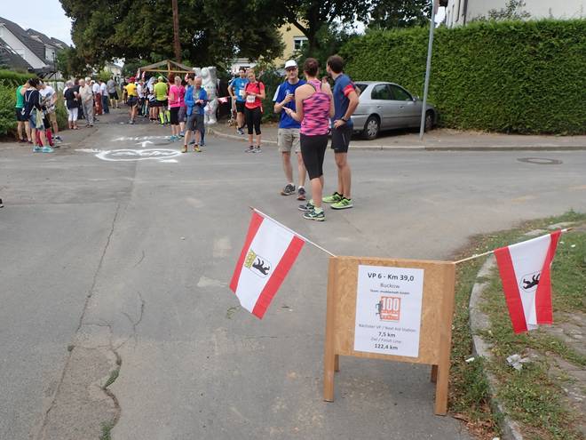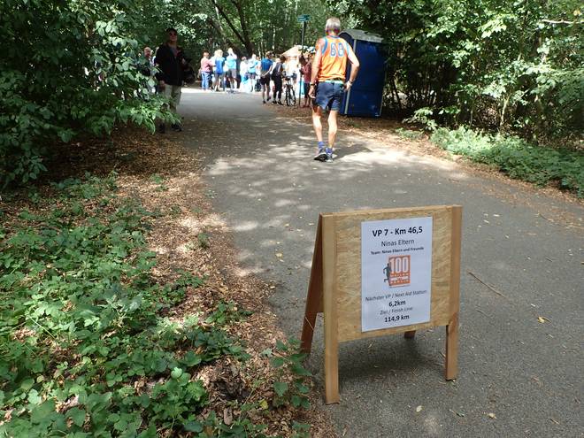 Wolziger Zeile VP7 - Nina's Eltern 11.45 Uhr / Km 46,5 Eine Stunde für 7,5 Kilometer. Da man nicht viel rechnen. Genau 8:00 Min/Km. Das war ja mal ein Tempoeinbruch. |