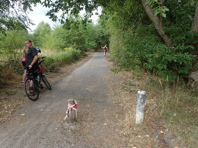 Grenzweg 10.47 Uhr / Km 39 Und wieder ging es weiter. War nicht so einfach, nach den Pausen wieder in Trab zu kommen. |