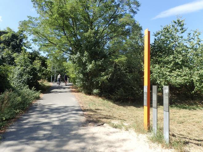 Ernst-Ruska-Ufer 9.23 Uhr / Km 28 Kilometerlang der A113 und dem Teltowkanal zu folgen, war echt öde. Nun trennten sich die Beiden und die Strecke folgte fortan der A113. |