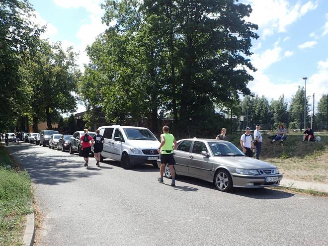 Jahnstraße VP9/WP1 - Sportplatz Teltow 13.30 Uhr / Km 59,2 52 Minuten für 6,5 Kilometer. Genau 8:00 Min/Km. Es hatte also geholfen, sich hierher zu kämpfen. |