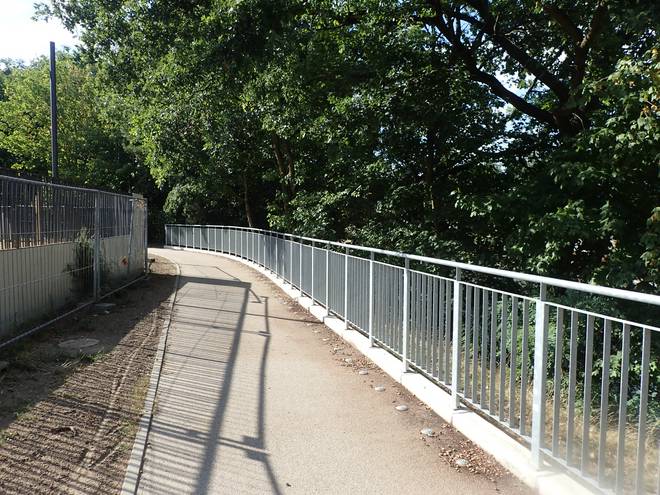 Rotkehlchenweg 17.22 Uhr / Km 84 Das war gar nicht gut für den Fuß. Da war es gut, daß ich gerade hier eine Weile laufen konnte. Da war der Druck auf den Vorfuß nicht so groß. |