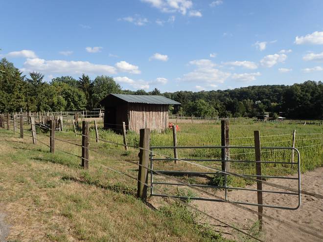 Am Wiesenrand 17.13 Uhr / Km 83 Schon im Wald war es hügelig gewesen und nun entlang der Bundesstraße B2 ging es eine ganze Weile bergauf. |