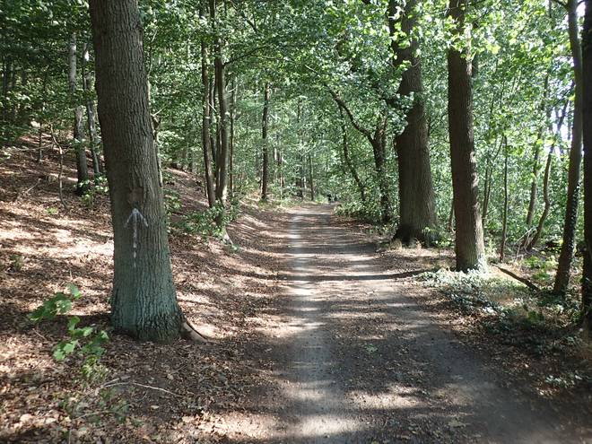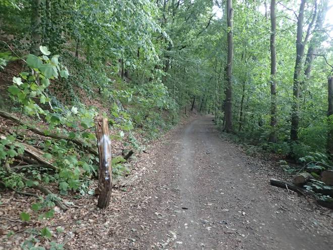 Heineholz 17.04 Uhr / Km 82 2017 war dieser Wald das erste Wander-Stück. Kilometer 79. Dieses Mal gehörte Gehen seit 52 Kilometern dazu. |
