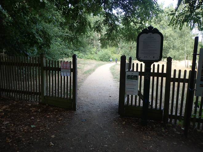 Sacrower See und Königswald 18.14 Uhr / Km 89 Der Eingang zum Schloßpark Sacrow war erreicht. Nun war es nicht mehr weit bis zum zweiten Wechselpunkt. |