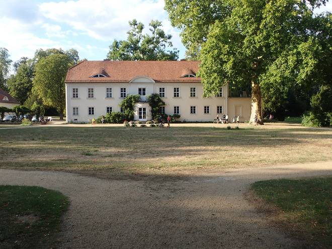 Schloßpark Sacrow 18.23 Uhr / Km 91 Das Schloß Sacrow hatte ich erreicht. Der Wechselpunkt war auf der Rückseite. |