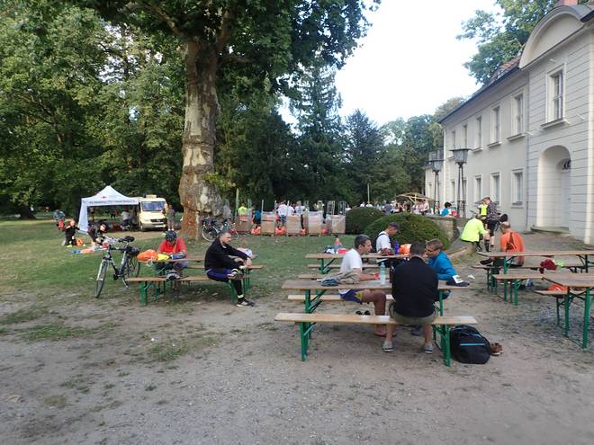 Schloßpark Sacrow VP14/WP2 - Schloß Sacrow 18.46 Uhr / Km 91,1 Und dann sollte es auch noch weiter gehen. 70,3 Kilometer waren es noch bis ins Ziel. Vom Sitzplatz bis zum Klo waren es 40 Meter. |