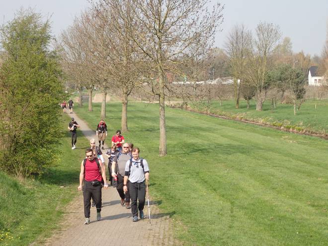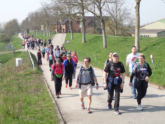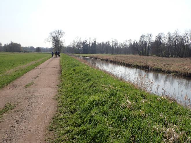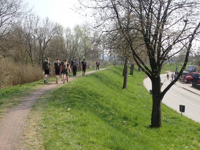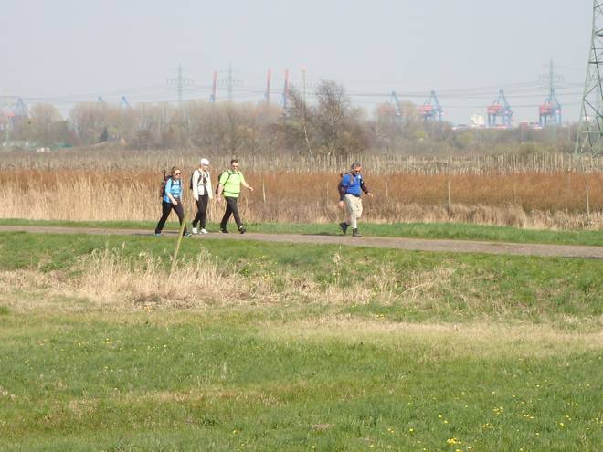 Osterfelddeich 14.41 Uhr / Km 2,5 An größeren Gruppen von Wanderer zog ich wandernd vorbei. |