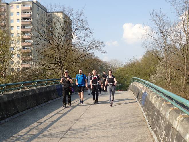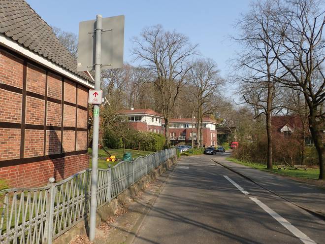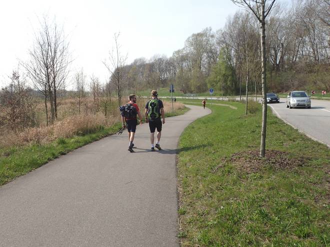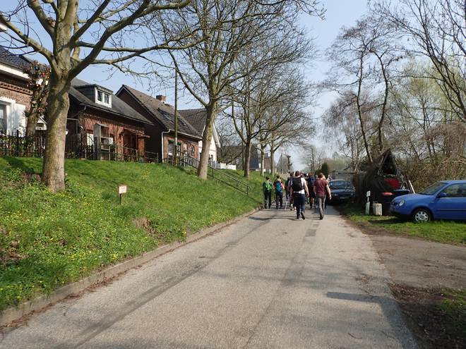 Finksweg 14.30 Uhr / Km 1,0 Nach einem Kilometer war ich an der Nachhut der 10 Minuten zuvor gestartete Gruppe dran. Immer noch wandernd. |