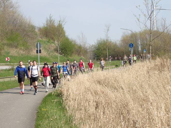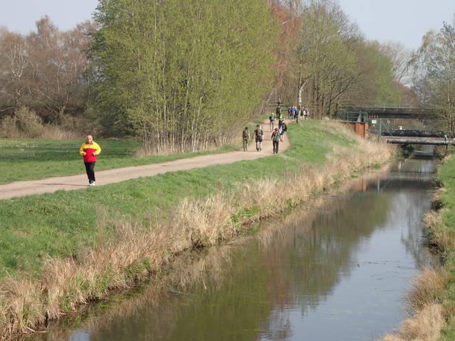 Osterfelddeich 14.42 Uhr / Km 2,7 Das gab bisweilen ein echtes Intervall-Training. Allerdings auf sehr langsamen Niveau. |