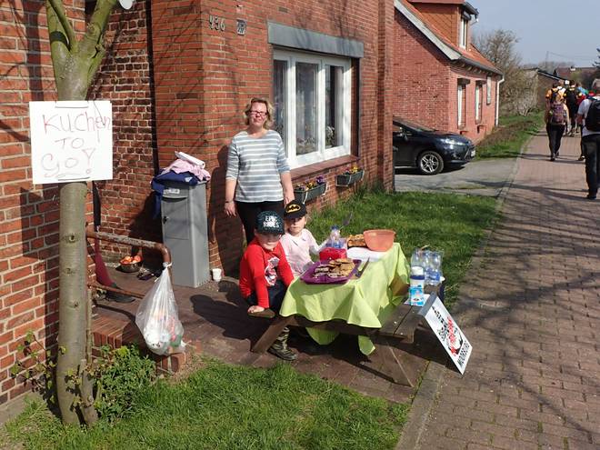 Hohenwischer Straße 15.12 Uhr / Km 6,8 Ein Verpflegungsstand von Privat an der Strecke. Tolle Idee. Leider hatte ich keinen Hunger. Dafür war es noch zu früh. |