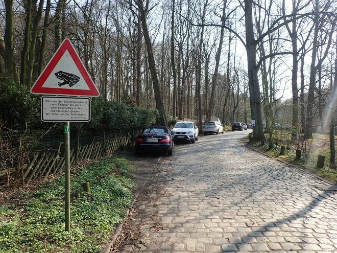 Meyers Park 16.02 Uhr / Km 13,7 Hoffentlich würden die letzten Wanderer hier schon durch sein, wenn der Weg wegen der Krötenwanderung in den 'Abendstunden' gesperrt werden würde. |