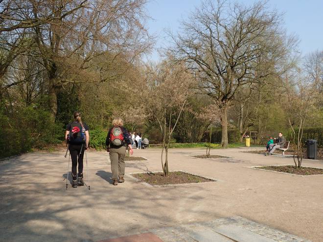 Harburger Stadtpark 16.36 Uhr / Km 17,9 Der Harburger Stadtpark kam dann schneller näher als die Kilometer-20-Marke, wo die erste Verpflegungsstelle sein sollte. |