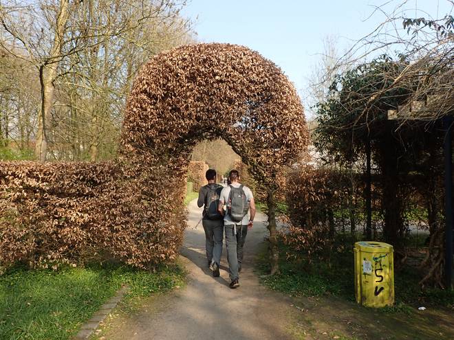 Gartenbauverein Reiherhoop 16.31 Uhr / Km 17,2 Interessanter Weise läuft auch der 2. Grüne Ring durch diesen Gartenbauverein, nimmt aber einen parallelen Weg. Irgendeinen Grund wird das schon haben. |