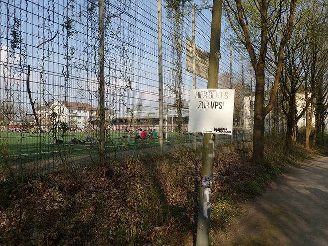 Sportplatz Baererstraße 16.47 Uhr / Km 18,7 Ähmmmmm... Kilometer 20?? Sicherlich nicht. Aber das war hier wohl nicht so wichtig. |