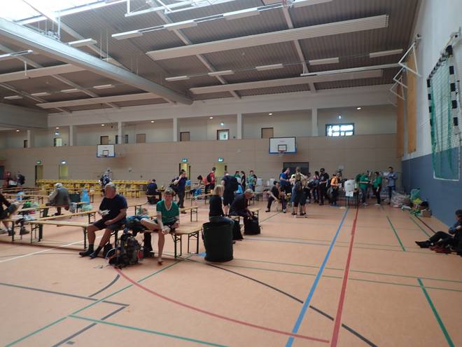 Sportplatz Baererstraße 16.46 Uhr / Km 18,7 Uhm... Wandern ist etwas ganz anderes als Laufen. Auch bei der Verpflegung. Getränke waren kaum da. Nur Wasser und Tee. Dafür gab es ohne Ende zu essen. Meterweise Kekse und Kuchen... |