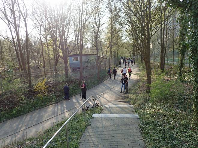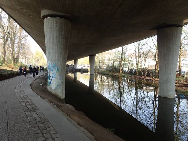 Harburger Stadtpark 16.50 Uhr / Km 19,1 Es ging zurück über die Brücke der Bundesstraße B 73 und in den Stadtpark. |