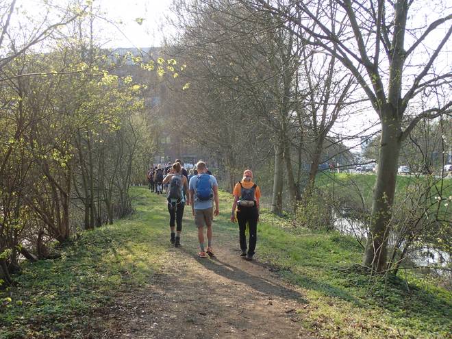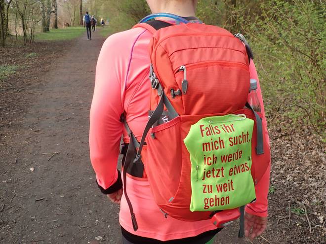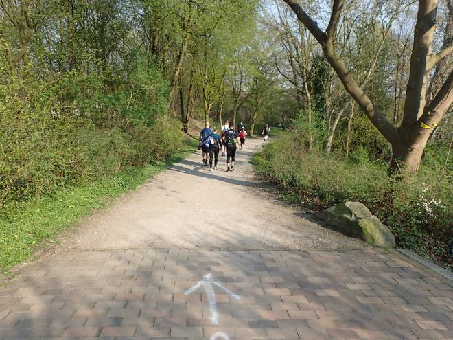 Stillhorner Weg 17.56 Uhr / Km 28,7 Immer mal wieder wurde ich durch größere Gruppen zum Wanderer. Eigentlich kein Problem, nur die Umstellung von Laufen zum Wandern brachte immer noch meine Atmung kurz ins Stolpern, was recht schmerzhaft an der kaputten Rippenseite spürbar war. |