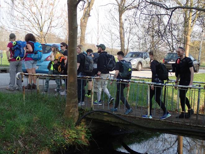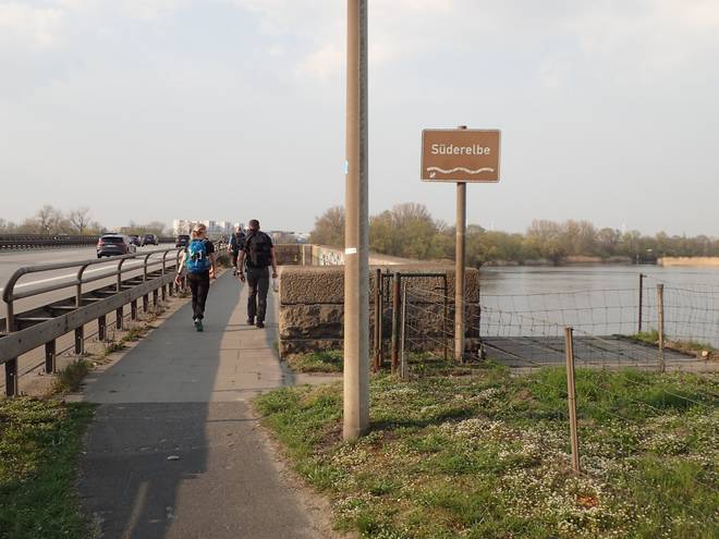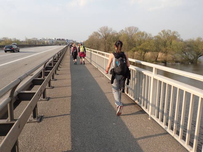Großmoordamm 17.10 Uhr / Km 21,7 Stau auf der Brücke. Die sah nicht so aus als würde sie endlos viele Wanderer tragen können. |