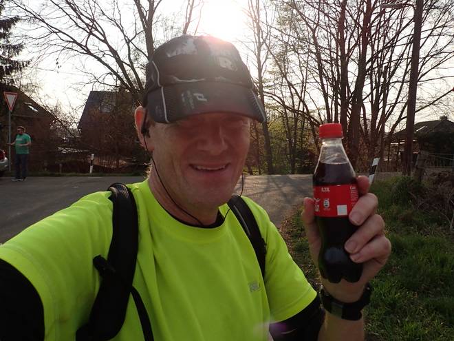 Einlagedeich 18.03 Uhr / Km 29,2 Ich hatte meine Coca-Cola!!! Dafür hätte ich längst sonst etwas gezahlt und die wollten nur € 1,60. |