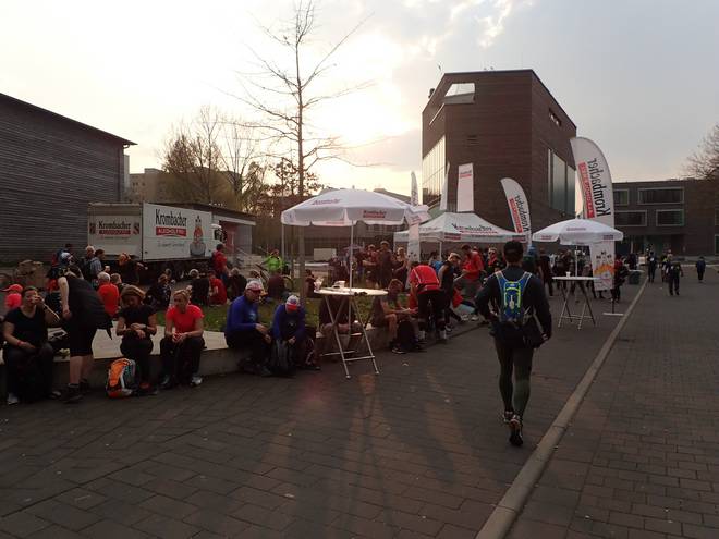 Koppelstieg 18.38 Uhr / Km 33,6 Was zu trinken wäre wirklich gut gewesen, aber Bier? Nein, danke. So durstig war ich dann doch nicht. |