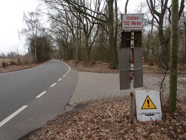 Hamburg-Öjendorf 8.43 Uhr Wie immer fand sich am Barsbüttler Weg das Hinweisschild. Also alles wie immer? |