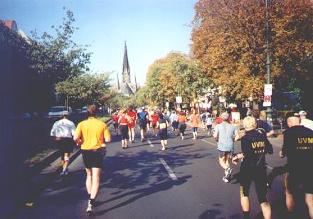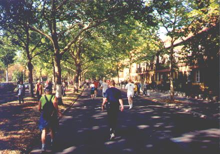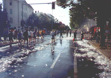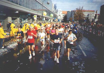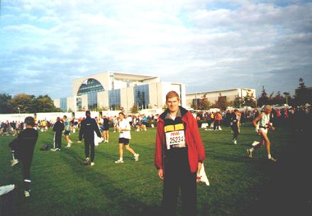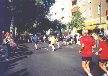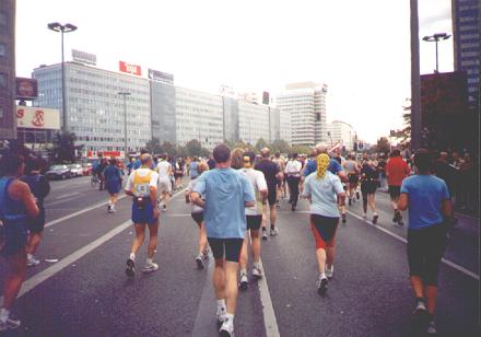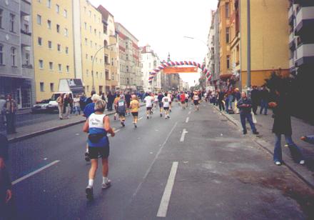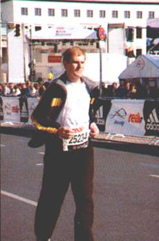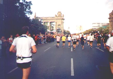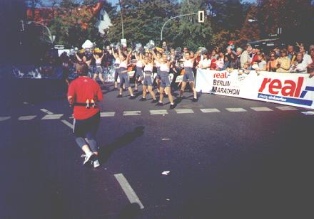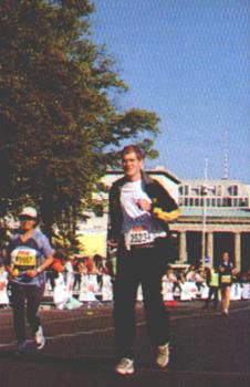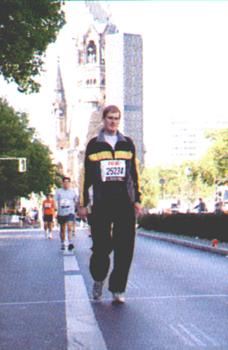 Das muß auf den letzten Metern sein. Die Jacke habe ich erst bei Kilometer 39 aufgemacht. | Hinter der Gedächniskirche, also so Kilometer 33,5. Die total Erschöpfung. Und noch über anderthalb Stunden zu überstehen | Schlußspurt!!! Plötzlich konnte ich die Beine wieder bewegen. Und sogar ein wenig lächeln. :-) |