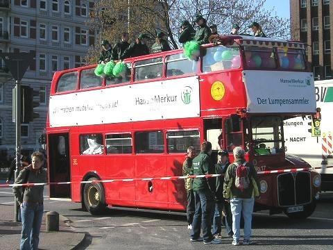 Der Bus ist zwar sehr schön anzusehen und die Stimmung auf dem Oberdeck war auch klasse, trotzdem zog ich es vor, diesem Bus möglichst nicht mehr zu begegnen... ... dem Lumpensammler. :-) |