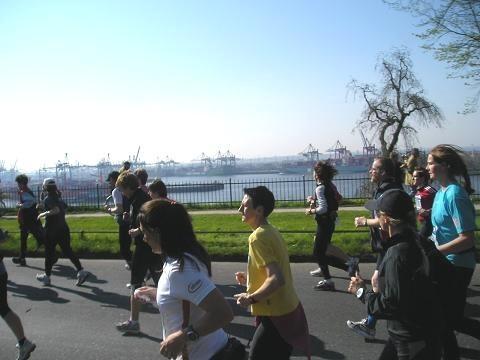 Kilometer 8: Elbchaussee Hier im hinteren Feld haben die Läufer auch schon mal einen Blick für das schöne Hafen- panorama. |